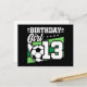 Este diseño de fiesta de cumpleaños de fútbol es perfecto para una fiesta de cumpleaños con tema de fútbol de una chica de 13 años para celebrar su cumpleaños número 13. Ideal para niños que les encanta jugar fútbol, ver fútbol o futuras estrellas del fútbol. Cuenta con un balón de fútbol en un gráfico de campo de fútbol con el número 13 para el cumpleaños número 13 de una chica.