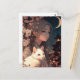 La IA generó arte al estilo vintage de un chica de anime con un gato blanco, flores de cerezo y una luna creciente