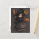 ¡Dé un poco de cariño a esta Halloween con esta adorable postal de bienvenida de un chica de brujas chibi! Vestida con una larga vestimenta gótica y gorra de brujas, sostiene una escoba y una calabaza sonriente, rodeada de tonos oscuros pastel que mezclan la encantadora dulzura. En la esquina superior derecha se encuentra la tipografía "fab-BOO-lous". Perfecto para niños, familias o cualquier persona que ame la gótica linda, esta carta le da un giro mágico y suave a la temporada espeluznante. Personaliza la parte posterior con tu nombre, dirección y tu propio mensaje de Halloween para hacerlo especial. Ya sea que lo estés enviando a pequeños demonios, amigos o familia, ¡seguro que los hará sonreír de un hechizo a otro! Diseño es Derechos de autor de Soar In Style Designs LLC.