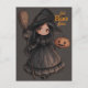 Postal Chica de bruja linda, cuarto y calabaza Halloween