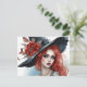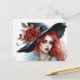 Acuarela bruja chica con hermosas flores rojas en su glamuroso gorra.