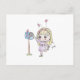 Un chica kawaii mandando una tarjeta de El día de San Valentín. Su dulce cara captura la esperanzadora expectativa de enviar un Valentín fuera y anhelar uno a cambio.