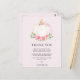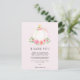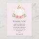 Agradece a tu familia y amigos por sus regalos considerados y por asistir al baby shower de tu niña con esta linda tarjeta de agradecimiento. Está decorada con una hermosa acuarela de una calabaza rosa, rosas y follaje verde sobre un fondo rosa suave. Fácilmente personalizable. Acuarela original © Michele Davies.