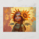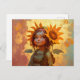 Ilustracion digital de una pintura de un chica surrealista con girasoles.