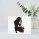 Silhouette de un chica con una guitarra. El chica está en negro y la guitarra en rojo.