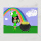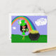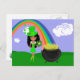 Un Chica de St Patrick's Day Brunette, Leprechaun, sostiene un zapato verde de caballo y está parado al lado de una olla de oro y un arco iris. Arte digital de Ilustraciones Hinterland Harmony de KLeighE