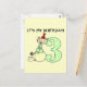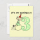 Cute Stick Figura 3ᵉʳ diseño de cumpleaños con un chica con una figura de palo con un gorra fiesta sentado en un globo y texto que dice "¡Es mi cumpleaños!". ¡Cuenta con un gran número 3!