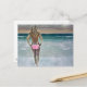 Chica de bikini topless en la playa mexicana - agua de arena rosa azul verde cielo de agua