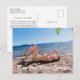 Envía saludos llenos de sol utilizando esta encantadora postal que presenta a una joven mujer relajándose en una playa de arena. El vibrante diseño encapsula la esencia de la alegría y la libertad, perfecto para enviar buenos deseos o invitar a amigos a unirse a ti para una escapada soleada. Alegrar el día de alguien con un trozo de felicidad tropical. El diseño 'Chica de vacaciones de primavera acostada en una playa de arena' captura la esencia del ocio y las vacaciones de verano sin preocupaciones, mostrando a una joven segura de sí misma disfrutando del sol en una playa tranquila. La armoniosa combinación de trajes de baño vibrantes contra un fondo de agua turquesa y arena dorada evoca sentimientos de relajación y aventura, lo que la convierte en una opción ideal para aquellos que anhelan su propia escapada de vacaciones.