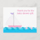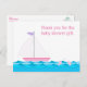 Un alegre barco de vela con una postal de ducha de bebé, nota de agradecimiento en rosa y púrpura que se coordina con las invitaciones a la ducha de bebé "Náutica de vela". Los gráficos están en ambos lados para un toque decorativo adicional. Arte vectorial original de Night Owl's Menagerie, 2013. Para coordinar los elementos con este tema, consulte: www.zazzle.com/nightowlsmenagerie/gifts?cg=196191983639699941 en Sailboat Nautical baby ducha Tema de NightOwlsMenagerie, www.zazzle.com/nightowlsmenagerie