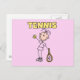 Una figura de palo de tenis femenina y un texto amarillo que dice "TENNIS" en camisetas de tenis, tazas, caramelos, tarjetas, pegatinas, imanes y otras prendas de tenis ¡y artículos que hacen grandes regalos para los jugadores de tenis!