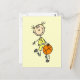 Un chica con un palo en una camiseta amarilla arrastra el baloncesto por la cancha con camisetas de baloncesto para chicas, caramelos, tazas, tarjetas, pegatinas, franqueo y otros artículos que puedes personalizar fácilmente en el lugar antes de pedir.