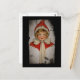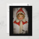 Arte de tarjetas de Navidad vintage que representa a una niña en un cabo de capucha roja.