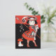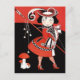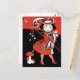 Dibujo negro, rojo y blanco de una niñita mirando sobre su hombro con un abrigo rojo, medias de redes de pesca, tacones altos y un gorra elegante. Dibujo del caricaturista italiano Antonio Rubino para la portada de la revista infantil "Il giornalino della Domenica", 1909.