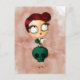 Chica espeluznante con Opossum. Este chica está preparado para el Monster Ball de Halloween. Con un vestido con forma de cráneo verde y un muñeco enfurecido, será la Reina de la Bola. Es tan bella - cabeza grande, cabello rojo y ojos redondos - espeluznante y espeluznante, pero bella, ¡eso es lo que es!