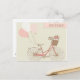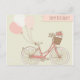 Una bicicleta rosa vintage deseando un feliz cumpleaños - ¡genial si tu hija, esposa, novia o quien quiera que tenga una bicicleta nueva para su cumpleaños! Este diseño incluye una bicicleta de época rosa con una cesta trenzada marrón y globos blancos y rosas.