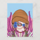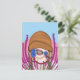 Postal Chica gracioso con flores de maíz en un campo de b