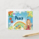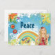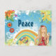 Postal Chica hippie rubio, flores y paz arcoiris