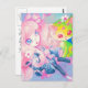 Postal Chica japonés de Wamono con el gatito de Kawaii