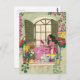 Chica leyendo en el balcón de verano con su ilustracion de gatos. Obra original de Caroline Bonne Müller.