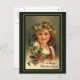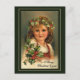 Diseñado por Susan Epps Oliver. Una hermosa imagen vintage de Navidad de una niñita con un vestido rojo y blanco y con una corona en el pelo.