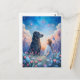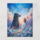 Esta encantadora postal captura un momento conmovedor entre una niña y su leal perro negro bajo un cielo crepuscular soñador. Rodeada de nubes pastel suaves, estrellas brillantes y un prado de flores silvestres, la escena evoca asombro, confianza y la pura magia de la amistad. Perfecta para los amantes de los animales, soñadores y cualquiera que atesore la inocencia de la infancia, esta obra de arte celebra el vínculo entre los humanos y sus compañeros peludos.