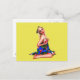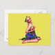 Papel de envolvimiento de tiki diseñado por Chica trópico retro con pinup original. © "Miss Cherrie Au Lait - Chica de playa". Fondo amarillo.