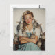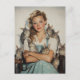 Una encantadora joven vestida de bóveda vintage se sienta tranquilamente rodeada de adorables conejos. Su cálida sonrisa y su suave expresión crean una escena reconfortante y nostálgica, que recuerda al clásico arte americano.