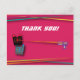 Usa estas postales útiles para darte las gracias por venir a tu fiesta de etiquetas láser. Personalice el frente y la parte posterior con su propio mensaje. El diseño tiene vigas láser disparando en diferentes direcciones. Un arma de fuego está disparando hacia un chaleco negro y rojo. Este diseño se coordina con esta invitación: