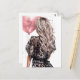 Chica rubia espalda globo rosa vestido de leopardo Tarjeta postal