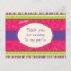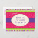 ¡Una tarjeta de agradecimiento para ese chica tan listo! Perfecto para mostrar su gratitud a sus huéspedes por venir a su pijama o a su fiesta temático del spa. Los tonos claros de verde, morado y rosa llaman la atención sobre esta postal que presenta marcas de agua de cosméticos en el frondoso fondo giratorio. Disponible en colores alternativos con productos coincidentes.