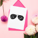 Fuente de escritura blanca "Fly Girl" en gafas de sol Aviator, tarjeta de cumpleaños de aviación divertida y linda.