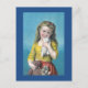 Una tarjeta de comercio victoriana de la década de 1800 de un chica sosteniendo un gatito en sus faldas y criando otro en la barbilla.