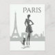 Postal Chica y gato en París con la Torre Eiffel Gris