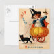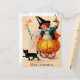 Postal Chica y gato negro