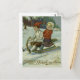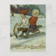 Postal Chica y niño disfrutan de un ilustracion en trineo