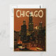 Este dramático horizonte de Chicago de noche es sólo lo que les gusta a los amantes de la cosecha con amor por las ciudades. Chicago, Illinois diseño de viajes vintage.