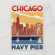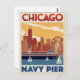 Postal Chicago Navy Pier Skyline Retro