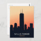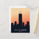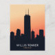 A minimalist vector illustration focusing on the silhouette of the Tower and the surrounding skyline against an orange sunset.