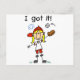 Un chica de béisbol con la figura de un palo rubio atrapa la pelota en su guante de béisbol y el texto dice "¡Lo tengo!" sobre chicas de diseño de beisbol camisetas, caramelos, tazas, tarjetas, pegatinas, cadenas de claves y otros artículos de ropa y regalo para jugadores de béisbol.