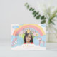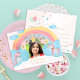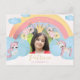 Día mágico del unicornio arcoiris sobre el camino azul polvoriento pastel, color rosa rubor y color dorado amarillo color de agua pintado a mano niños de 5º cumpleaños foto invitación postal con una corona de oro de princesa y guión falso de tipografía de oro. ++++++++++ Perfecto para chicas! +++++++++++ Fácil de personalizar con la foto y los detalles de tu hijo en ambos lados.