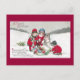 Una Feliz Navidad "Aquí está mi deseo de que los Navidades les saluden, y a todos los que aprecian: Feliz tiempo, un futuro brillante, Buena Suerte siempre a la vista". Cuatro niños vestidos con abrigos cálidos y mitones, han encontrado una caja de muñecas y otros juguetes tendidos en la nieve en esta vintage postal navideña de 1914.