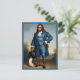 Tarjeta postal de interpretación artística divertida de El niño azul de Gainsborough reemplaza al elegante joven sentado con Bigfoot, de pie en la misma pose icónica. El clásico traje de satén azul, pantalones, cuello de encaje y zapatos con lazo azul se conservan fielmente, creando un contraste divertido entre la refinada moda inglesa del siglo XVIII y el legendario gigante del bosque.