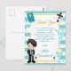 Postal Chico de pelo negro azul primera comunión gracias