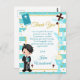Lindo diseño de niño de pelo negro azul para primera comunión con fondo a rayas azules y confeti dorado. Gráficos de Mujka y KlouiseDigiArt en Etsy.
