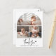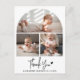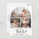 Esta tarjeta de agradecimiento con foto para baby shower Rustic Chic es la combinación perfecta de elegancia y calidez, diseñada para expresar tu gratitud sincera de una manera verdaderamente especial. Con tres fotos personalizadas de tu pequeño, el diseño muestra la primera imagen en la parte superior dentro de una encantadora forma de arco, mientras que dos fotos más preciosas se sientan debajo, todas ellas hermosamente separadas por una delgada línea blanca sobre un fondo blanco limpio. Debajo de este impresionante collage, un moderno guión manuscrito rústico deletrea con gracia "Gracias", seguido del nombre de tu bebé y la fecha de nacimiento, añadiendo un toque personal y sentimental. La parte trasera de la tarjeta ofrece espacio para tu mensaje de agradecimiento personalizado, lo que la convierte en un recuerdo significativo para amigos y familiares. Con su diseño atemporal y su impresión de alta calidad, esta tarjeta de agradecimiento es una forma sincera de compartir tu agradecimiento mientras celebras a tu