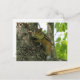 Esta postal cuenta con un pequeño y bonito trozo de pepino trepando un árbol.