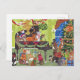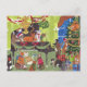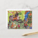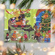 Cute retro Christmas illustration with cats in a vintage living room with kittens around the Christmas tree, looking presents, making music, singing and playing the piano on a snowy afternoon. Send this card to a cat lover. Original artwork by Caroline Bonne Müller