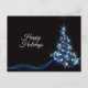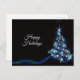 Christmas Greeting Blue Shiny Tree Black Elegant Postcard. Unique, beautiful, stylish design. Easy to be personalized. Font style, size and colors can be changed. Matching items are available.