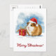 Send a smile this Christmas with this adorable watercolor postcard featuring a fluffy guinea pig in a Santa hat next to a festive red gift. Perfect for animal lovers, pet owners, and anyone who enjoys lighthearted, cozy holiday art.